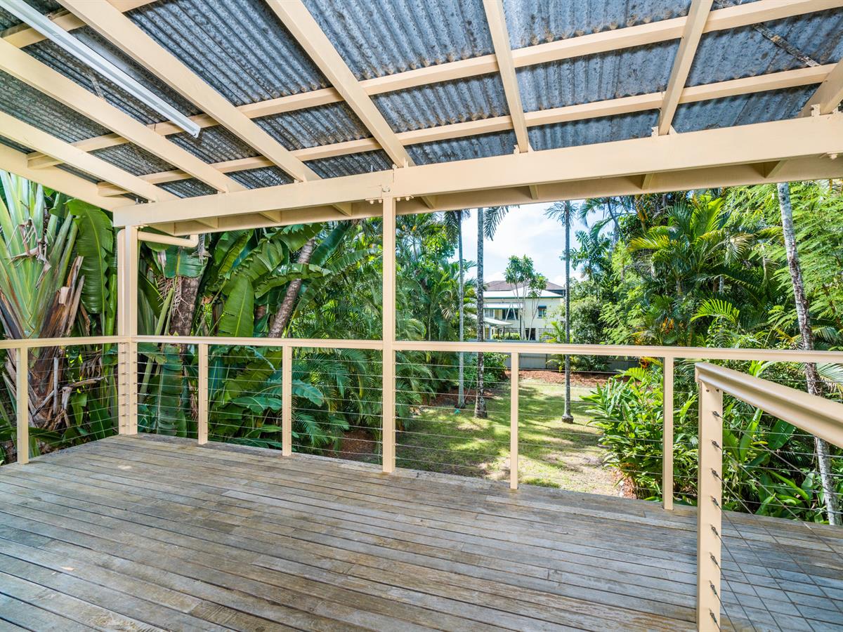 The undercover outdoor timber deck overlooks the low maintenance fully fenced yard with tropical gardens.